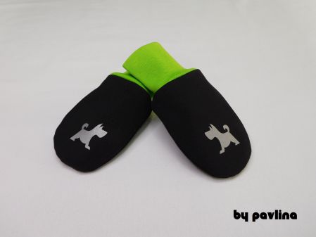 Rukavičky bez palce pro nejmenší dětičky jsou ušité ze zimního softshellu (z rubu fleece), vyteplené další vrstvou flecee antipilling. Rukavičky jsou voděodolné. Zdobené reflexní nažehlovačkou.