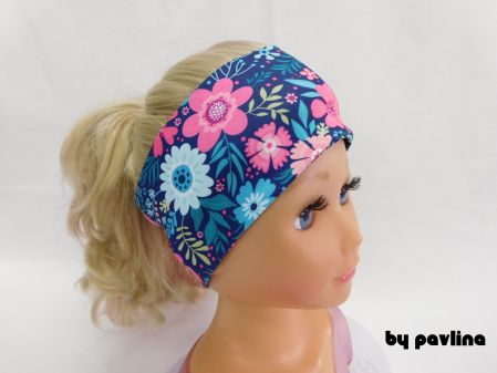 Dívčí / dámská funkční čelenka - Modré sedmikráskySkladem 4 kscena od 170 Kč/ ks