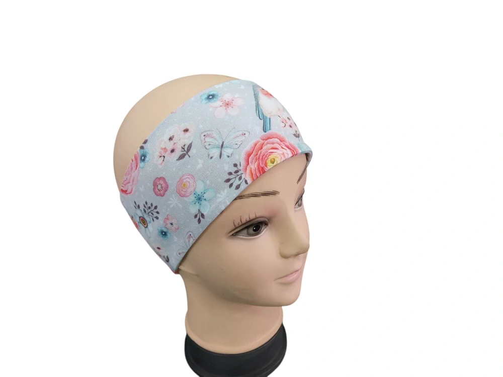 - Dívčí / dámská čelenka - rovná - Ptáčci na šedé