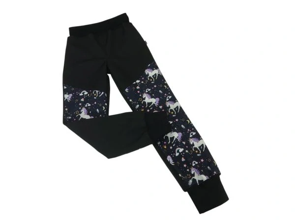 Dívčí zimní rostoucí softshellové kalhoty - Černé + Magičtí jednorožci 2Po objednání ušiji do 3 - 5 dnů 1 ks590 Kč/ ks