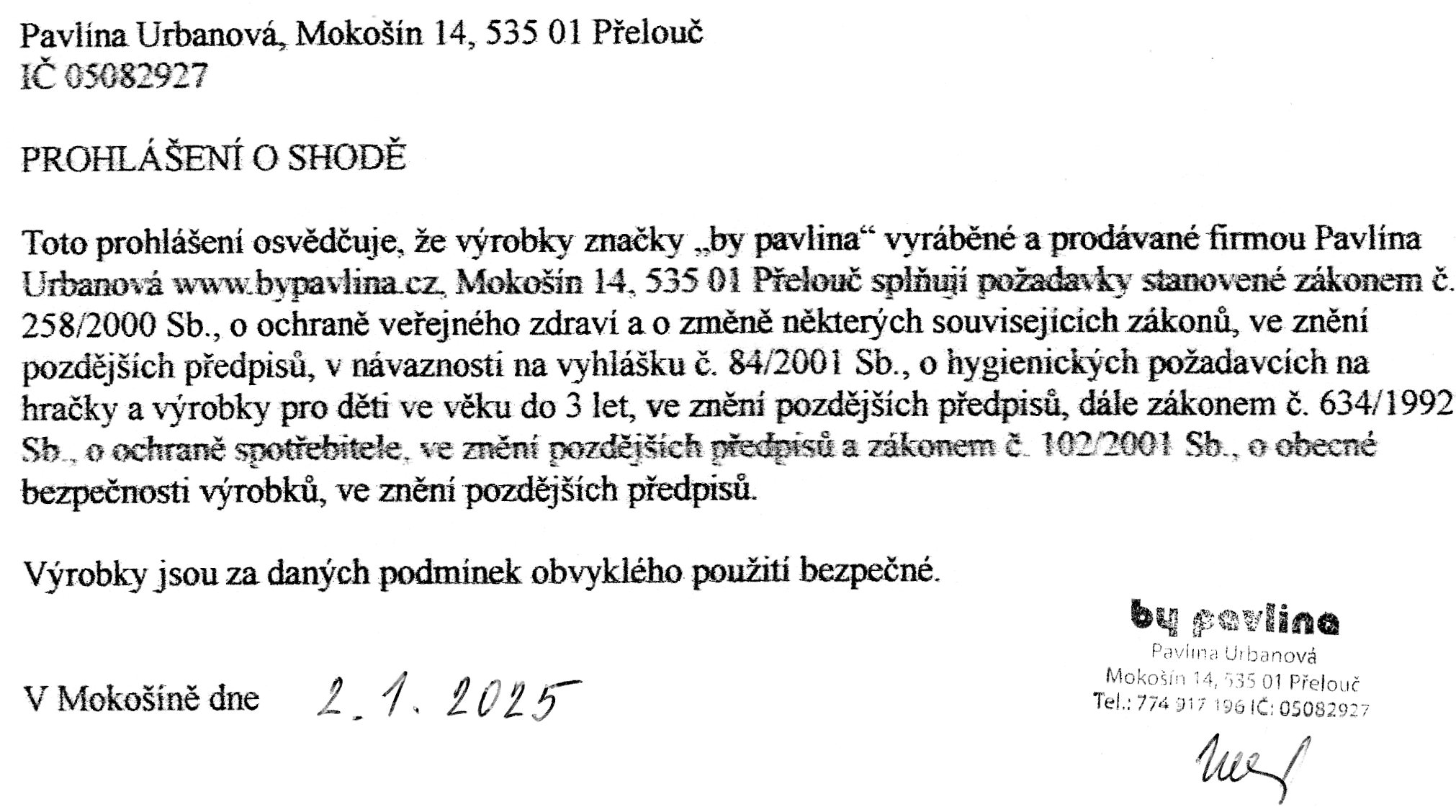 - Prohlášení o shodě